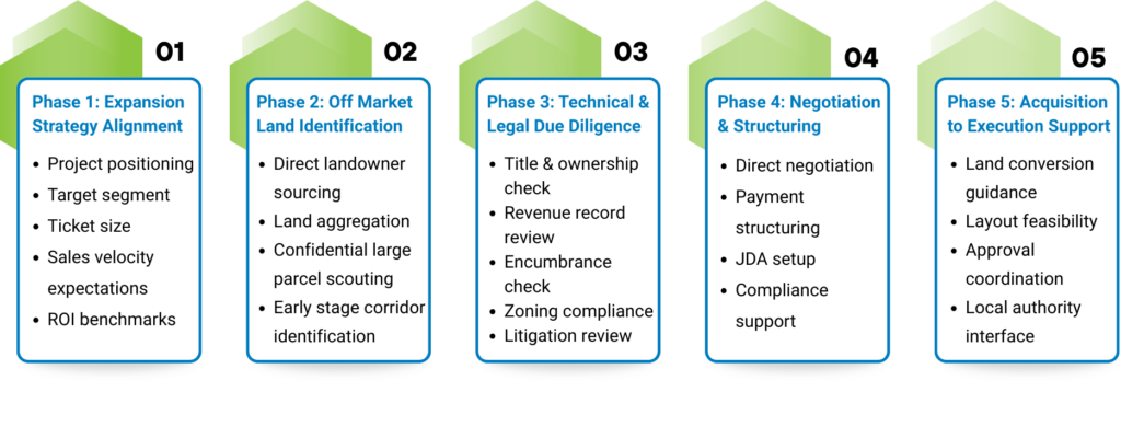 We assist in securing the right land, within the right micro-market, at the optimal stage of the growth cycle, ensuring strategic positioning and long-term value creation.